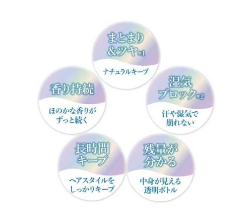 アクアクリスタル処方で髪内部のうるおいも守りながら、湿気や汗による崩れも防ぎます。コンパクトでポーチに入れやすく、外出先でも手軽にケアできます♪