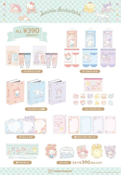 全国のサンキューマートで10月中旬より、ハローキティやシナモロールなど人気キャラクターの限定アイテムがALL390円(税込429円)で販売開始♡