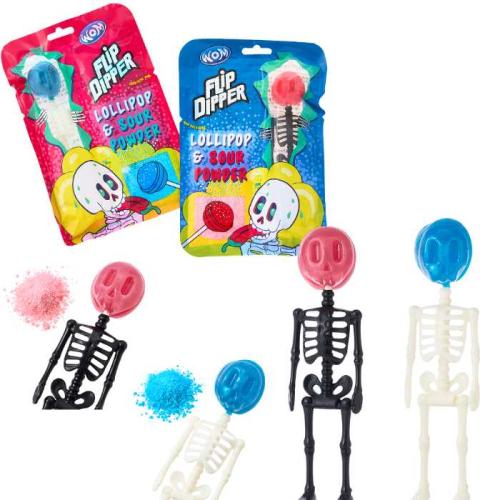 スイーツ以外にも遊び心あふれる雑貨が大集合!ガイコツの持ち手がインパクト大の「フリップディッパー」(各270円)は、キャンディ部分を楽しめるユニークなお菓子。