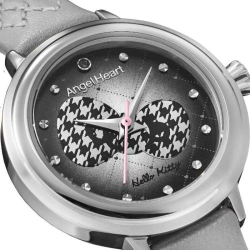 今回登場する『ハローキティ×Angel Heart コラボレーションウォッチ』は、ケースサイズ26㎜の小ぶりな設計。文字盤中央には千鳥格子柄のリボンを配置し、インデックスにはクリスタルを施しました。