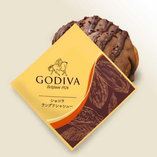 「GODIVA ショコラ ラングドシャシュー」は、ショコラ風味のラングドシャ生地をベースに、表面にはコーティングチョコレートとカカオニブをトッピング。