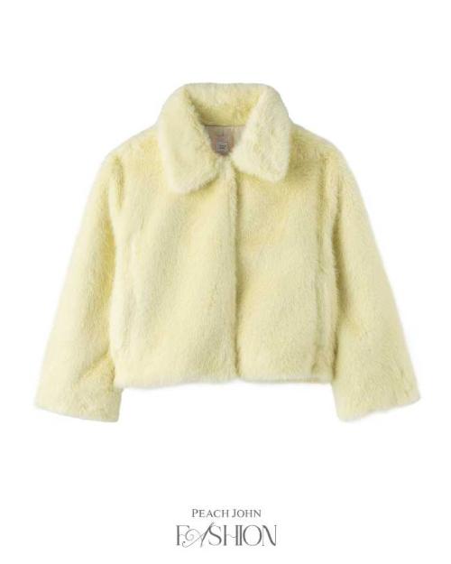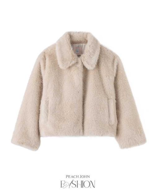 さらに「エコファーショートコート」(16,500円/S・M/イエロー・ピンク・ベージュ)は、リッチな毛並みで存在感大。
