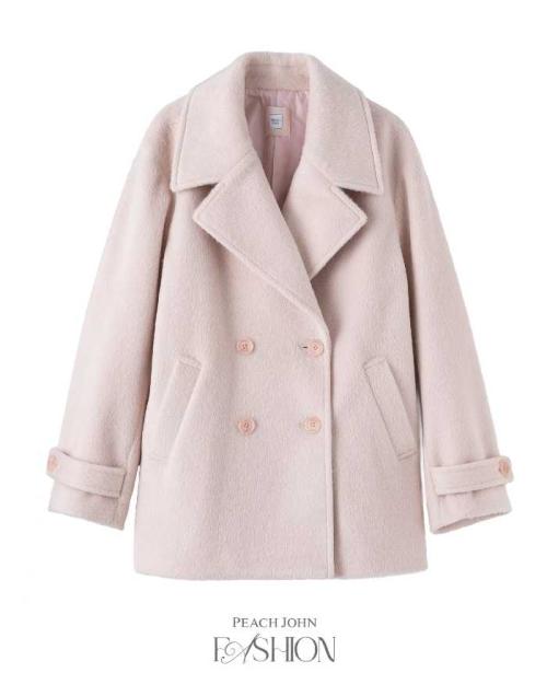 冬の主役アウターには、ふわふわ起毛の「シャギーショートPコート」(16,500円/S・M/ピンク・ブラウン・ミント)が登場。