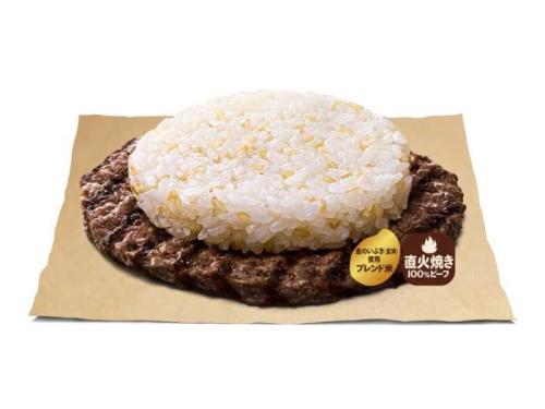 白米と金のいぶきをブレンドし、お米本来の甘みと直火焼きビーフの相性を楽しめます(450円)。どちらも+350円でパティ2枚に変更可能です。