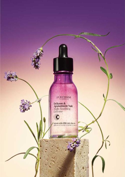 ロクシタンの「ナイトディフェンス アドバンストスカルプセラム」には、南仏産のラベンダーエッセンシャルオイルをはじめ、海藻由来のマリンプレバイオティックやライスエキスを配合。