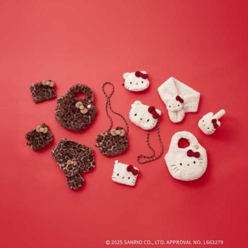 今回のコラボでは、キティのお顔をモチーフにした「フェイス型ふわふわポーチ」(3,479円)や、差し込むだけで決まる「ふわふわティペット」(4,479円)、耳元を可愛く包む「イヤマフ」(4,479円)が登場。