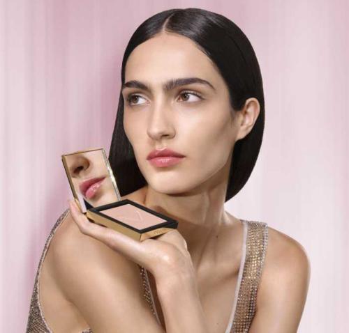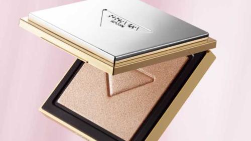 「プラダ ライト グローイング パウダー」は、星屑のように繊細なマイクロラメ*が肌を上品に彩る限定ハイライター。