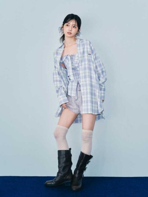 ヴィジュアルモデルの小室安未さんが纏うのは、上品なシルエットと遊び心あるカラーが共存するアイテムたち。