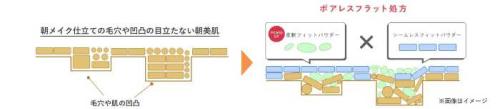 新『プレストパウダー』は、柔軟性のある「柔軟フィットパウダー」と「シームレスフィットパウダー」の2種の粉体で毛穴や凹凸をしっかりカバー♡