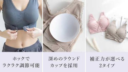 「タイプが選べる」育乳ナイトブラ2点SETは、ホックで調節可能な前ホックタイプと、クロスホックタイプの2種類を用意♡