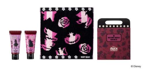 2種のハンドクリーム(紅茶をイメージしたワンダーティーパーティーの香り、花々の香りが広がるワンダーフローラルミックス)と、アリスモチーフのミニタオル入り。ギフトにもぴったり。