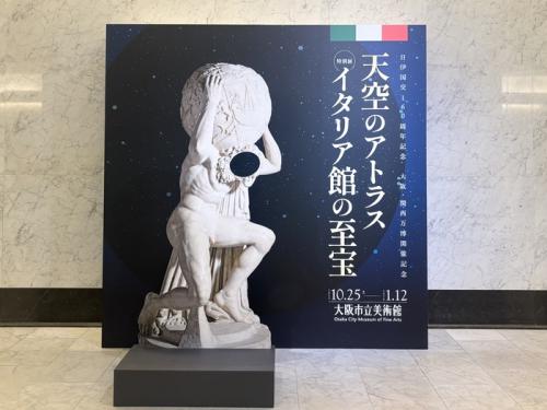 会場へ足を踏み入れると、現れる「ファルネーゼのアトラス」大理石でできており、高さ193cm、直径102cm、古代彫刻の最高傑作と称されています。