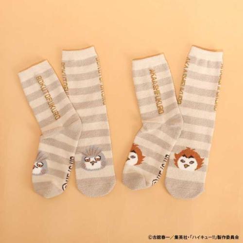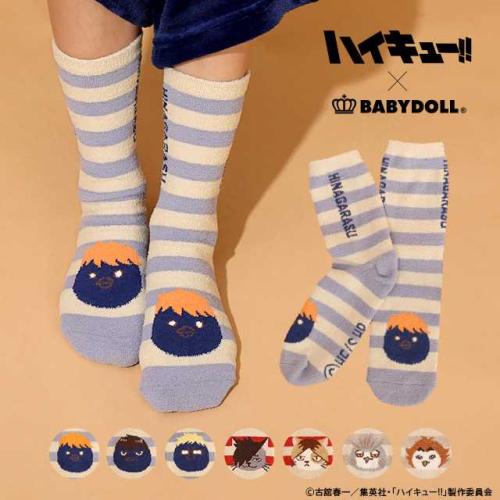 同シリーズの「ハイキュー!!もこもこルームソックス」(全7種)は、アニマルマスコットが可愛く足元を包み込むマシュマロタッチ素材を採用。