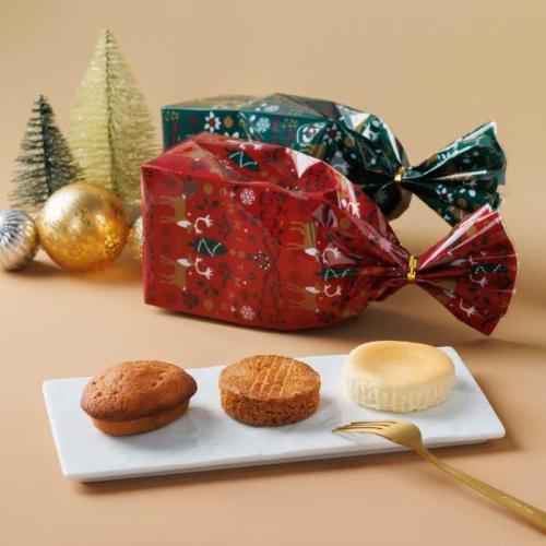 赤と緑の華やかなパッケージが目を引く『クリスマス焼菓子セット』(各920円税込)は、チーズの旨みが詰まった人気焼菓子を詰め合わせ。
