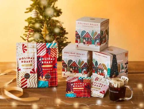 自宅でもホリデームードを楽しめる「タリーズホリデーロースト」は、ミディアム・フルボディ(各200g 1,650円)と、2種類を味わえるアソートボックス(1,720円)の3種類。