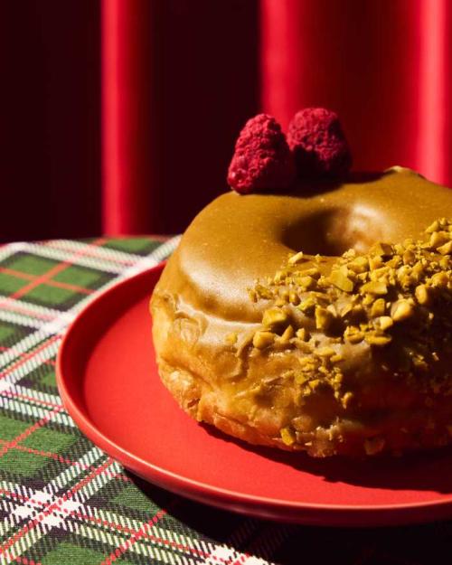 まるでリースのようなビジュアルの「ブロンテピスタチオドーナツ」(590円)は、シチリア産ピスタチオとラズベリーの贅沢な組み合わせ。