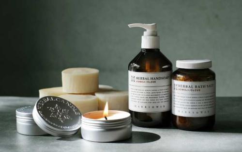ハーバルバスソルト(¥400〜¥1,820税込)やハンドソープ(¥1,480税込)、キャンドル(¥1,430税込)など、どれも冬のギフトに最適。