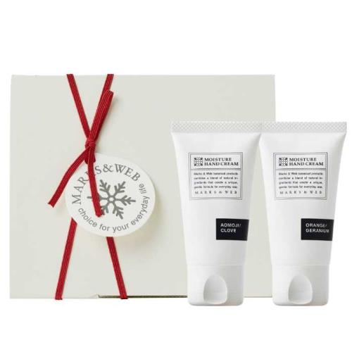 ギフト仕様の限定ラッピング入りで、そのまま贈り物にも最適です。モイスチャーハンドクリームセット(30g×2個 ¥2,200税込)は、数量限定のため、なくなり次第終了です。
