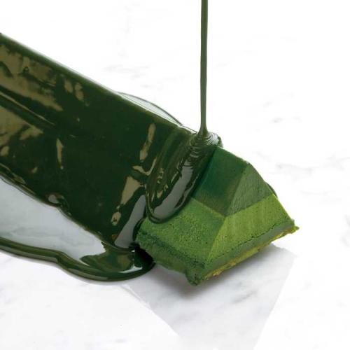 碾茶を練り込んだサクサクのショコラフィユティーヌ、焙煎抹茶塩ガナッシュ、まろやかなお薄茶ショコラムース、濃厚なお濃茶ショコラムース、そして抹茶ショコラ・グラサージュの五層仕立てで構成されています。