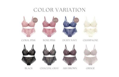 「BraJelly ピオニーレースアップブラ」は、ベーシックなカラーに加えて、血色感を引き出す「コーラルピンク」や「ローズピンク」、シックな「ダスティネイビー」など全8色を展開。