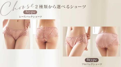 「BraJelly ピオニーレースアップブラ」には、レースアップが華やかなデザインのセットショーツが2種類。