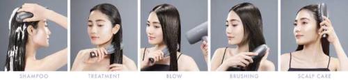 「スムースシャインマルチケアブラシ」は、人間工学に基づいた独自設計で、どんな角度からでも頭皮にフィット。