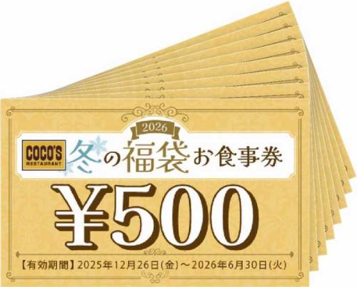 ココス冬の福袋2026が登場!税込4,400円で、オリジナルストロベリーハニーティー30g、茶こし付きマグカップ、ティースプーンに加え、店内飲食で使える4,400円分のお食事券、冬らしいノルディック柄のニットバッグ、オリジナルマスキングテープやゼムクリップまで付いた豪華セットです♡予約は11月18日(火)10:00から、全国508店舗で受付。