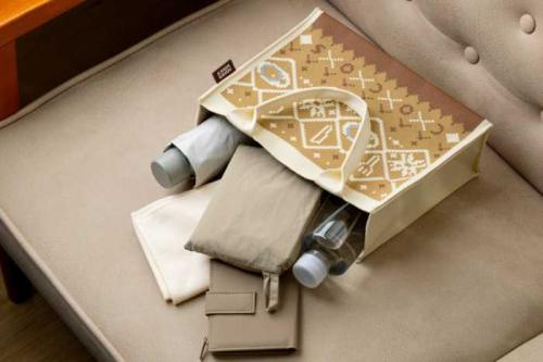 ブラウンを基調に冬のコーデに馴染むデザインで、自立するマチ付きのため使いやすさも◎。
