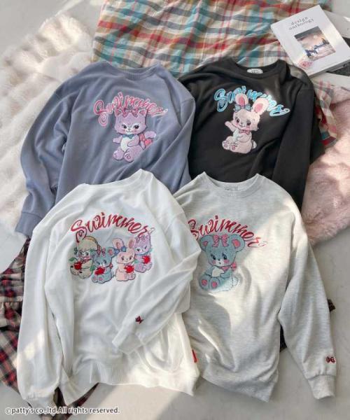 SWIMMER×AS KNOW AS plusのコラボスウェットは、ガーリーな可愛さと遊び心を詰め込んだ特別な1着。リボン刺繍やキーホルダーなど、細部までこだわりが感じられます。