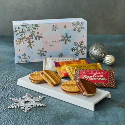 毎年人気の「N.Y.C.SAND」から、この冬だけの特別なギフト「N.Y.C.S.ウィンターアソート」が登場しました。新作の「N.Y.ヘーゼルナッツカカオキャラメルサンド」をはじめ、人気フレーバーが4種入った贅沢な詰め合わせ。雪の結晶をあしらった限定パッケージは、冬の街並みにぴったりな華やかさ♡大切な人へのプレゼントにも、自分へのご褒美にもおすすめです。