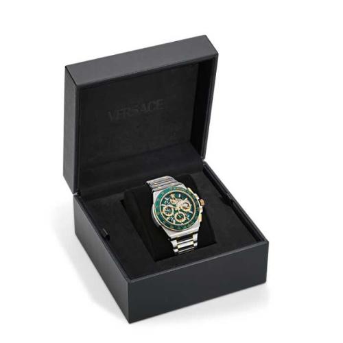 「GRECA EXTREME CHRONO SKELETON」は、ヴェルサーチェの腕時計では初めてスケルトン仕様を採用した特別モデル。