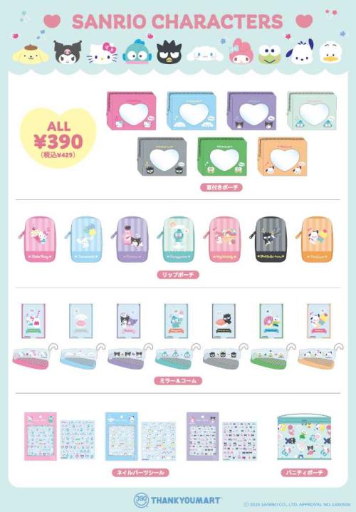 リップポーチや窓付きポーチなどの実用的なアイテムから、ネイルパーツシール、ミラー&コームなどの小物まで幅広くラインナップ。全商品が390円(税込429円)で、気軽に集められるのも魅力です。