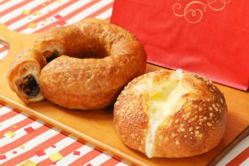 看板商品の『マジカルチョコリング』、『のび〜るとろりんチーズフランス』、総額1,800円分の『クーポン付きカレンダー』のセットです。