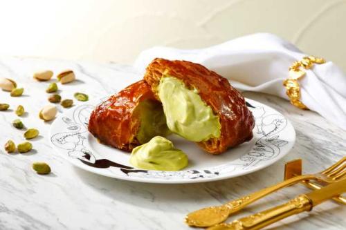144層に織り込んだサクサクのパイ生地に、甘酸っぱい苺と風味豊かなピスタチオバタークリームを合わせ、濃厚ながらも軽やかな味わいに仕上げられています。