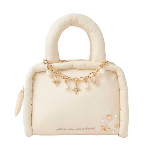 ふわふわのパフハンドルと、気分に合わせてアレンジできるチャームが魅力の限定バッグ。可憐なホワイトクリスマスの雰囲気をまとった特別感のある一品です。
