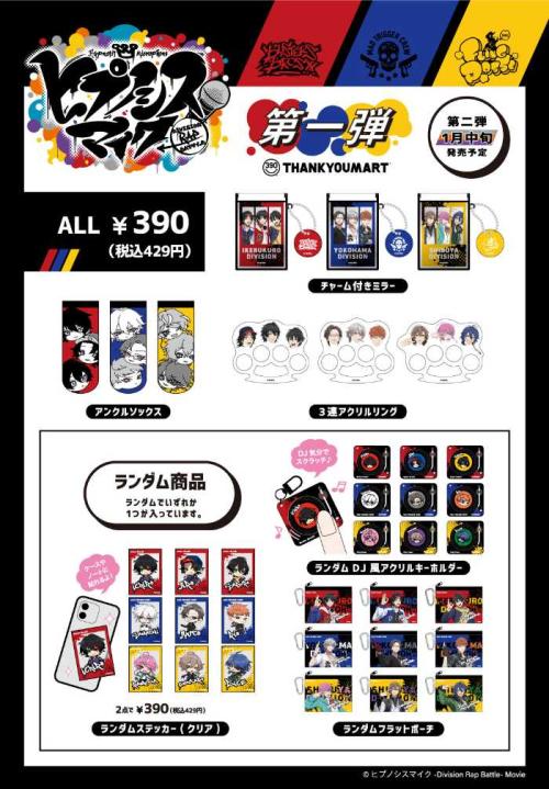 映画『ヒプノシスマイク -Division Rap Battle-』とサンキューマートの初コラボ限定アイテムは、ディビジョンカラーを活かした全12種がALL390円(税込429円)で手に入るチャンス♡