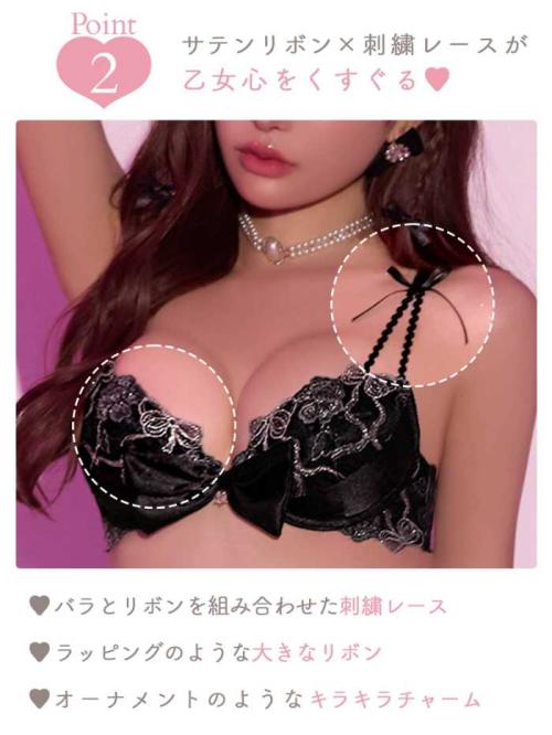 甘さの中にスパイスを効かせたシャインブラックは、艶めくサテンと煌びやかなレースが“可愛いのに色っぽい”を叶えるデザイン。