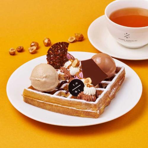 香ばしいプラリネとカシスを合わせた「パフェアラミニュットプラリネノワゼット&カシス(1,980円)」や、そのワッフル版(1,430円)も冬にうれしい濃厚な味わい。