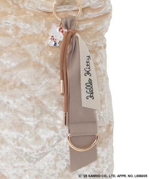 トレンド感溢れるベロアキルティングのバッグには、可愛らしいキャラクターのチャームがついており、シンプルなデザインでも存在感抜群!