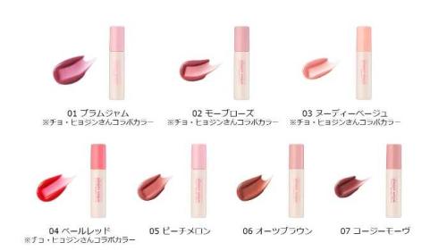 ビューティークリエイター・チョ・ヒョジンさんとの共同開発カラーで、落ち着いた印象のミュート系色味が中心です。各色は以下の通りです。