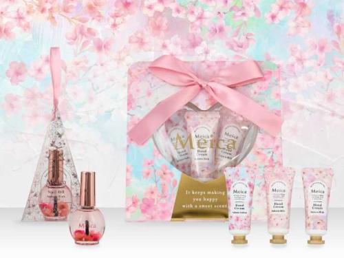 粧美堂のコスメブランド「Meica」から、ひと足早く春の訪れを感じる“さくらの香り”のハンドケアアイテムが登場しました。今回のラインナップはネイルオイルと、香り違いのハンドクリーム3本がセットになった全2アイテム。思わず飾っておきたくなる華やかなパッケージで、乾燥が気になる季節の癒やしケアにぴったりです。可愛らしさと実用性を兼ね備えた新作は、自分用にはもちろん、ギフトにもおすすめです♪