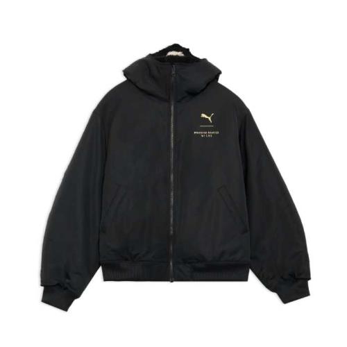 「PUMA x MONSTER HUNTER WILDS アイルー BOA JKT」(18,700円税込/カラー01・81)、「T7 アルシュベルト KNIT JKT」(13,200円税込/カラー01・41)、「T7 アイコン KNIT PANTS」(11,000円税込/カラー01・41)は、モンスターのディテールや調査隊エンブレムが印象的。
