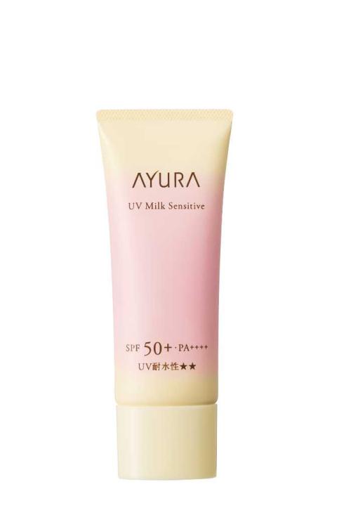 アユーラUVミルクセンシティブt(医薬部外品)は、SPF50+・PA++++・UV耐水性★★の高機能UV下地。30gで3,080円(税込)。紫外線吸収剤フリー処方で、敏感に傾きがちな肌をやさしくガードします。