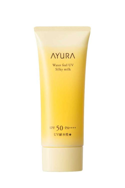 アユーラウォーターフィールUVシルキーミルクは、SPF50・PA++++・UV耐水性★を備えたボディ・フェイス用日やけ止め。70gで3,080円(税込)。