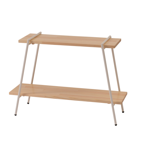屈強なアイアンパイプの脚に、パインウッドの棚を差し込むだけで設置できる簡単設計。それだけにフィールドに持ち出しやすく、収納棚としてリビングでもキャンプでも大活躍。