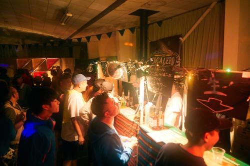 金曜夜の前夜祭で開催される持ち寄りBBQは、炭や焚き火台は主催側が用意しているので、食材を持ち込むだけで参加できる。キャンパー同士の交流が盛んで、毎回大好評。ここで仲良くなって次回は一緒に来るなんてことが多数起こってます! そんな持ち寄りBBQに今回はDJブースが登場し、音楽と一緒にBBQが楽しめる内容にパワーアップ。初めましてのキャンパー同士でも大盛り上がり間違いなしです。