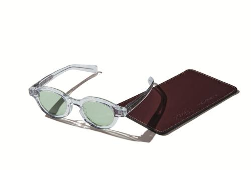 クリアフレームに薄いカーキのレンズを入れたサングラス。「今季で3シーズン目となり、毎回レンズの色が異なります。今回はミリタリースタイルにもマッチするカラーリングになりました」。