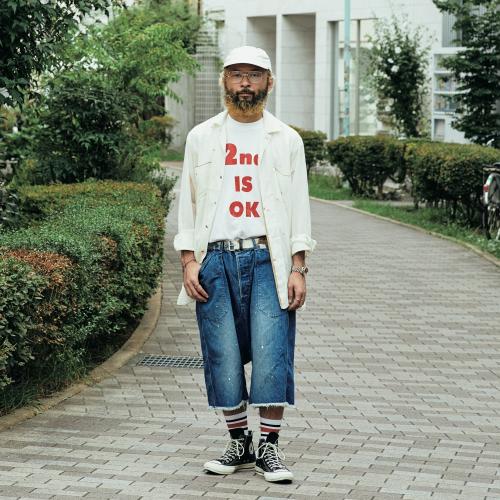 「各ブランドに作ってほしいアイテムを提案して、ボクのエゴやワガママを体現してもらっているので、そのスタンスをショップ名にしました(笑)。今秋も別注アイテムを30型くらいリリースします」。そんななか、中村さんがハマっているスタイルが、微妙な丈感のパンツを主役にした変則コーデ。