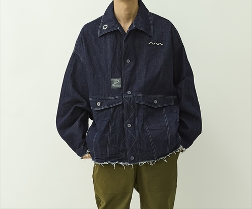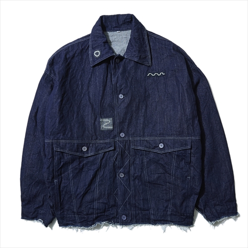 フロントにワッペン、バックにチェーンステッチをあしらい、ボタンは染めを施したボタンを採用。手仕事の温もりが随所に散りばめられ、普遍的なデニムジャケットが個性的に。