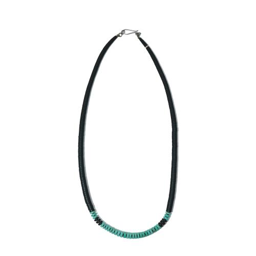 カルヴィンロバトというサントドミンゴ族のアーティストが手がける天然石を使用したネックレス。「バイクといえばシルバーなイメージが多い中で、遊び心のあるカラフルな仕上がりが常連さんたちとプチブームになりました」。